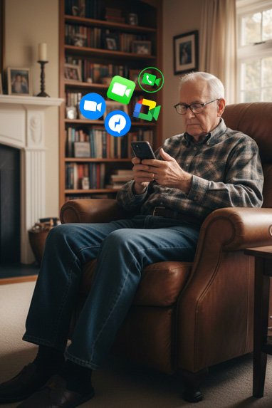 We help you learn the most commonly used video calling apps simple, step-by-step. Whether your family uses Apple, Android, Facebook, or international platforms, we make each app easy to understand so you can stay connected face-to-face with the people you love.